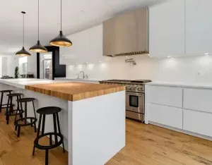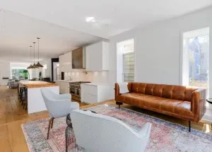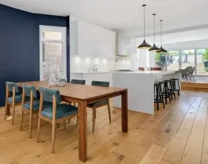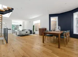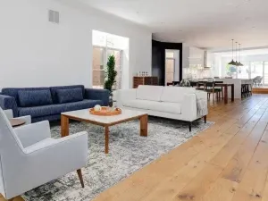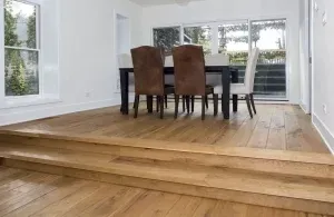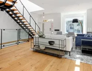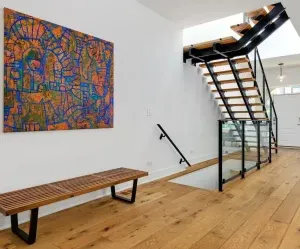 A project from 2018 that used our 7″ Rustic White Oak flooring. The finish is the Pallmann Magic Oil, with no stain. The homeowner was pleased with how it brought out the warmth in the floors. This flooring has our unique “worn edge” profile where we round over the edges of the planks as it is milled. If you would like pricing on this flooring, please fill out our Quote Request form.